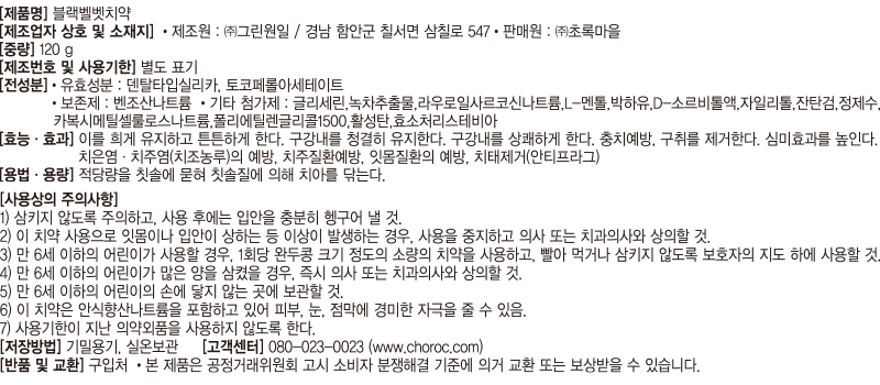 | 품명 및 모델명 | 블랙벨벳치약 |