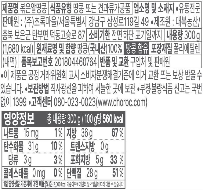 2023-12-22제대로 로스팅하면 색깔부터가 틀리고 고소한 맛이 흡사 땅콩버터 수준으로 나는데 초록마을 볶은 땅콩은 로스팅이 덜되어 생땅콩 맛도 남