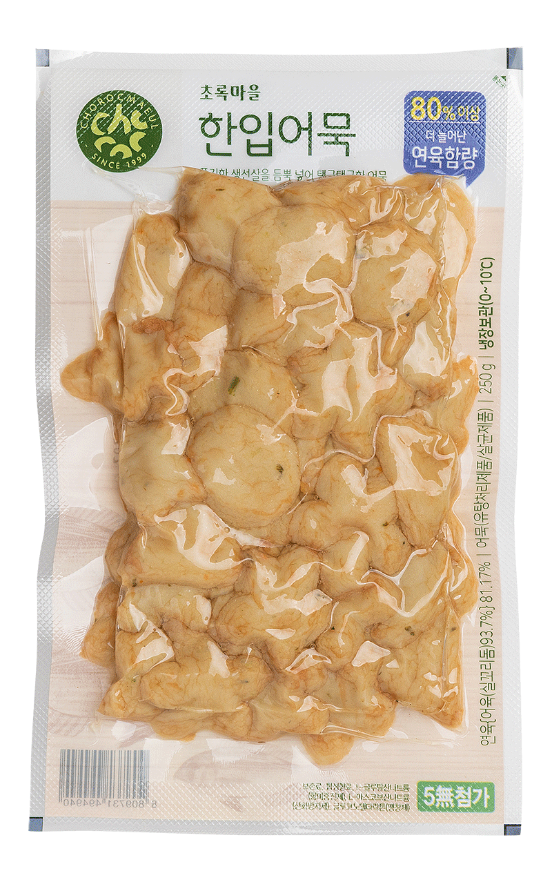 초록마을 어묵은 밀가루 대신 감자 전분으로 어육을 배합합니다. 덕분에 조리해도 퍼지지 않고 쫄깃한 식감이 그대로 살아 있습니다.